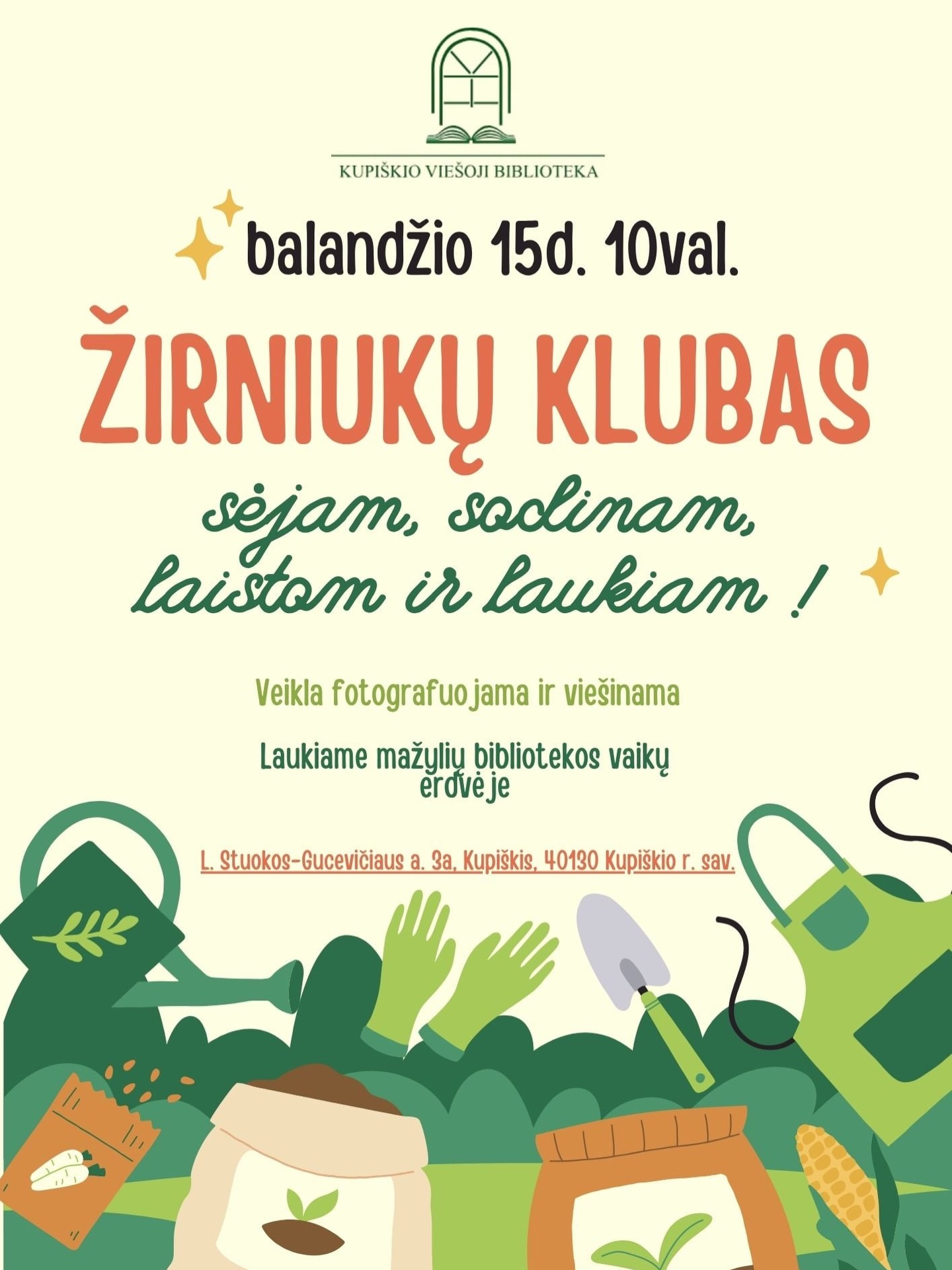 Šį kartą sėsime, sodinsime, laistysime ir žaisime.
