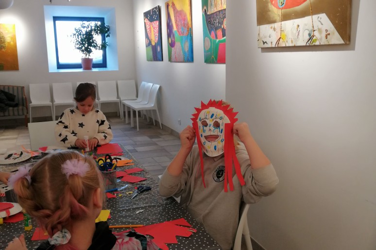 rėkauti ir visaip kitaip išdykauti, kad žiema išsigąstų ir pabėgtų. Smagus būrelis vaikų iš Kupiškio vaikų dienos centro „Debesų kiemas“ apsilankė vasario 17 dieną bibliotekoje. Pirmiausia prisiminėme Užgavėnių tradicijas, kai persirengėliai „čigonai“, „raganos“, „ubagai“, „meškos“, „gaidžiai“ ir „velniai“ vaidindami ir pokštaudami linksmino žmones. Todėl vaikams buvo pasiūlyta pasidaryti kaukes. Vaikų kūrybingumui nebuvo ribų. Vieni gamino „raganos“, „čigono“, kitiems labiau patiko „velnio“ kaukė. Deklamuodami Užgavėnių eiles visi smagiai dirbome. Vaikai nepamiršo pasakyti, kad per Užgavėnes reikėdavo sočiai valgyti, net 12 kartų. Populiariausias Užgavėnių patiekalas – blynai, simbolizuojantys vis ryškiau šviečiančią saulę. Prisimenant šią tradiciją visi dalyviai buvo pavaišinti blynais. Pasistiprinę ir pažaidę dalyviai, išskubėjo varyti žiemą iš kiemo...