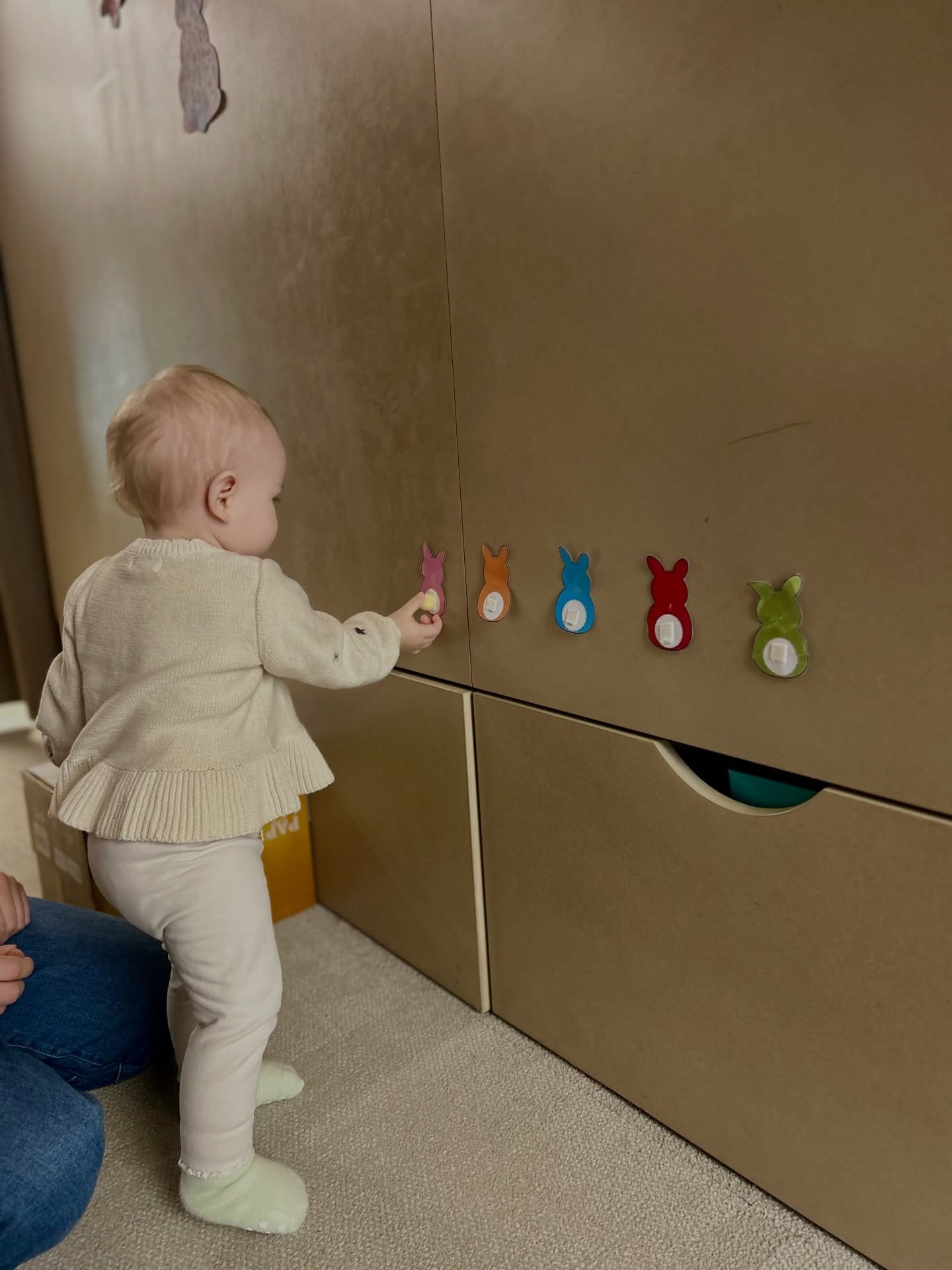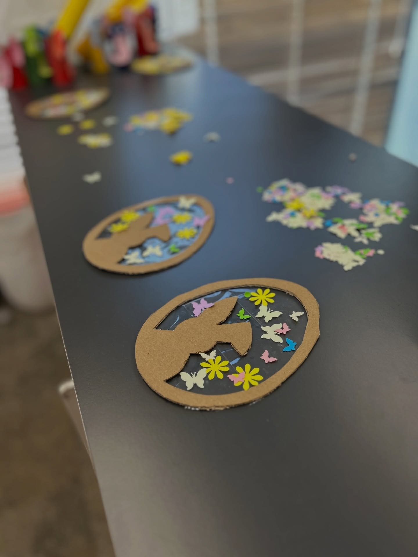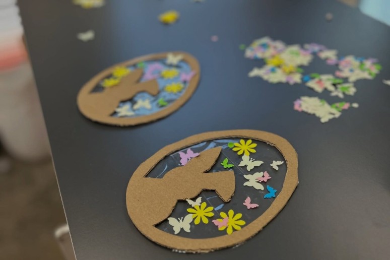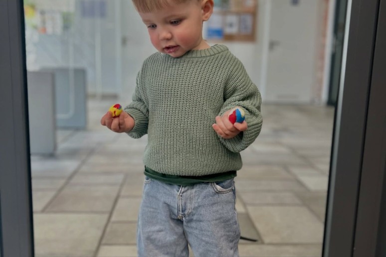 2026 04 01Šiandien „Žirniukų“ klube buvo linksma ir smagu kaip niekad! Vaikai su puikia nuotaika kibo į veiklas: lipdė iš plastilino velykinius margučius, spalvino kiškučių kiaušinukus bei bandė priklijuoti kiškučiams uodegytes.