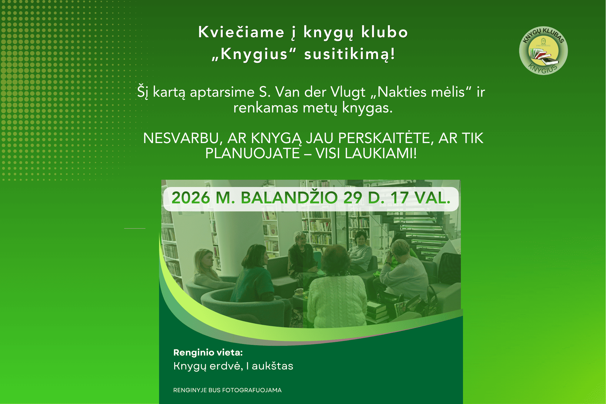Knygų klubas „Knygius“ kviečia į susitikimą! 2026 04 29