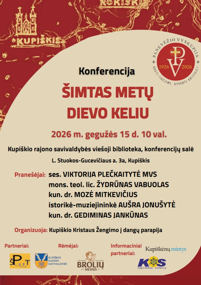 Kupiškio Kristaus Žengimo į dangų parapija organizuoja ir maloniai kviečia dalyvauti Panevėžio vyskupijos šimtmečiui skirtoje konferencijoje „Šimtas metų Dievo keliu“.