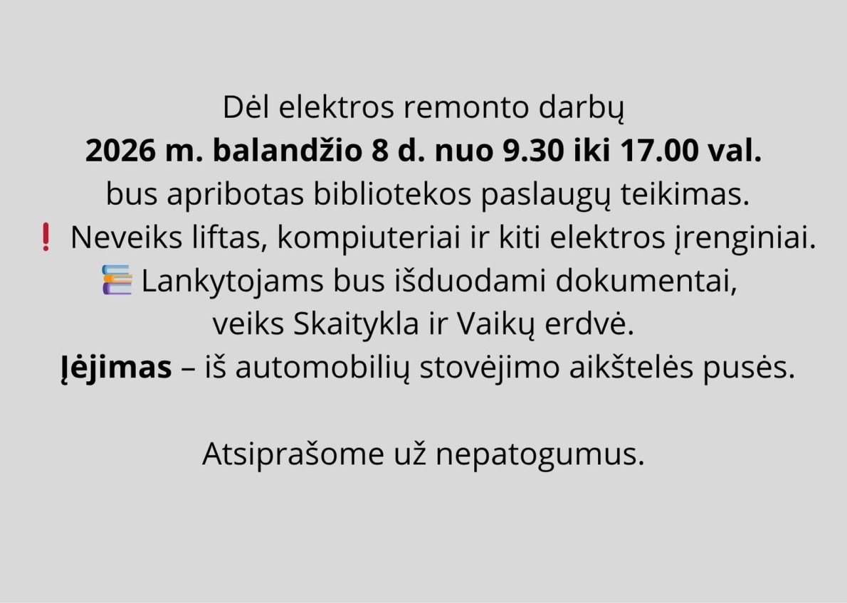 Lankytojams bus išduodami dokumentai, veiks Skaitykla ir Vaikų erdvė.