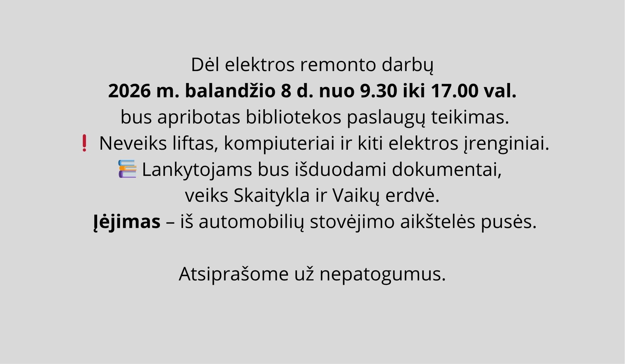 Atsiprašome už nepatogumus.