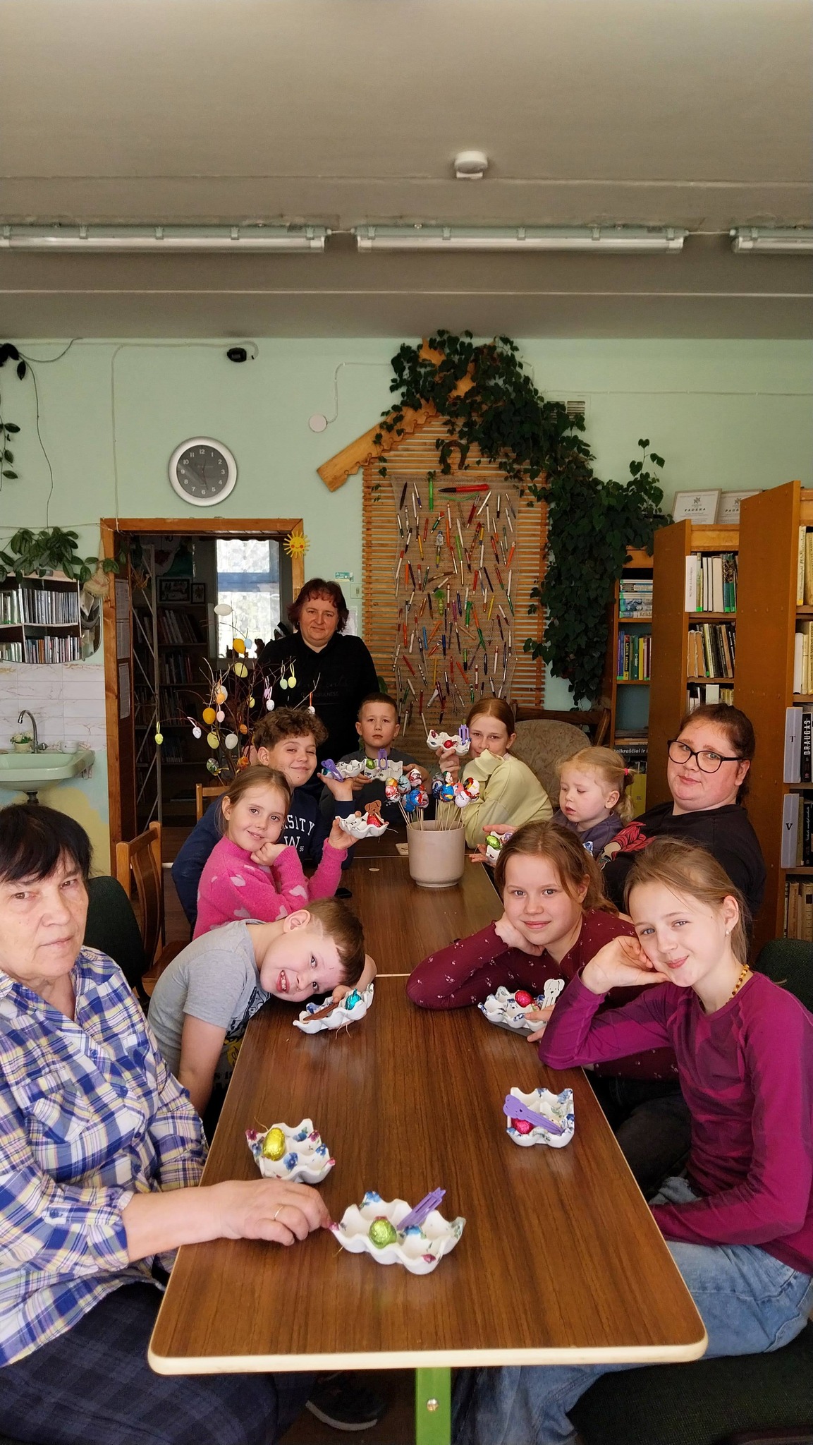 Vaikai už kruopštų, atsakingą darbą buvo apdovanoti šokoladiniais kiaušiniais ir skirtukais knygoms.